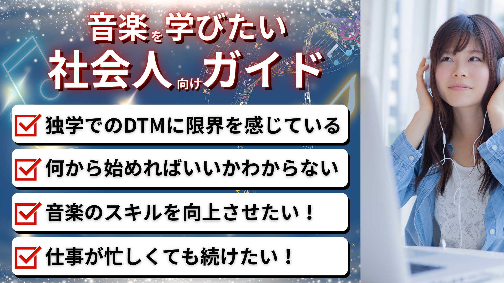 対象は、仕事と両立しつつ楽器やDTMで音楽で自己表現を広げてみたいと思っている社会人の方。