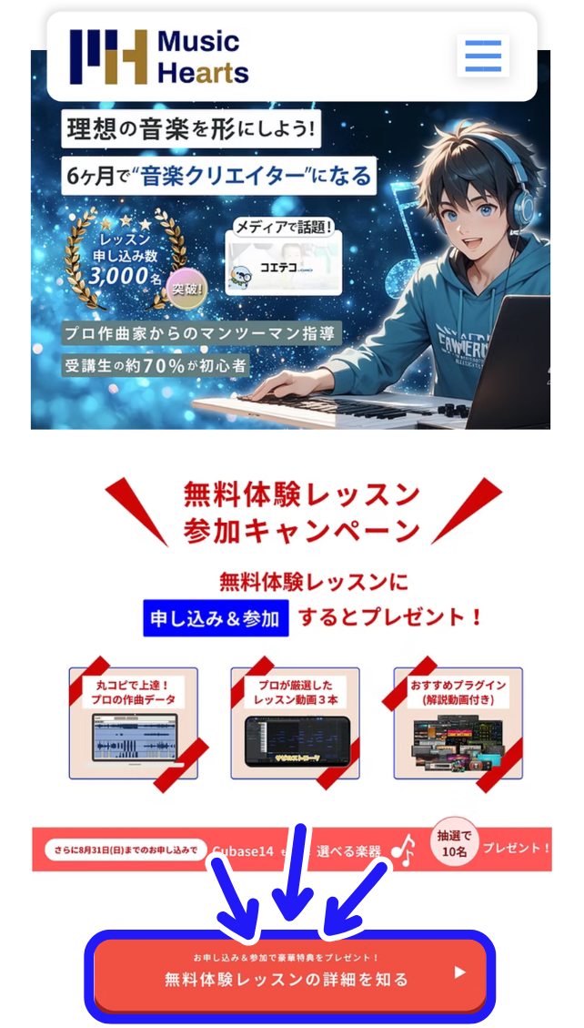 独学でやっていたんですが限界を感じている中、Music Heartsを知りました。